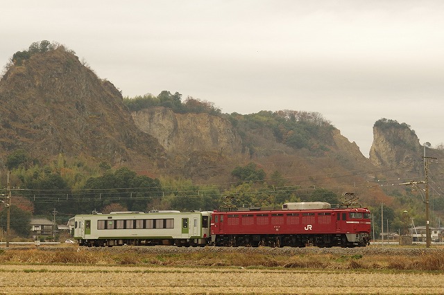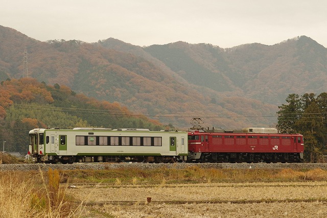 自宅を早朝に出発し、下道で岩船へ。まずはキハ110郡山入場配給を2発。紅葉がきれいだったが曇りで残念、他に撮影者はいなかった。配給撮影後撤収していると、続行で211系ダブルパンタが来た。配給の小山の先へ追っかけも可能だったが、211系も記録しておこうと留まり、ダブルパンタの小山折返しまで待って撮影した。 |