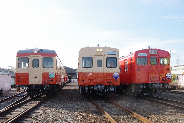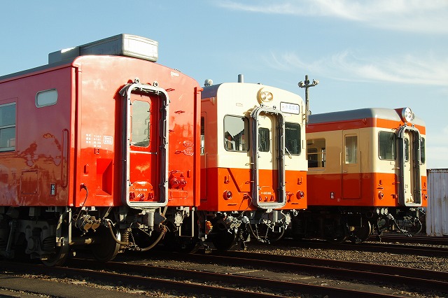 水臨の国鉄型キハ3並び(キハ205・キハ30-100・キハ37-103) |