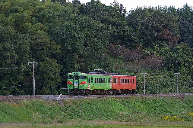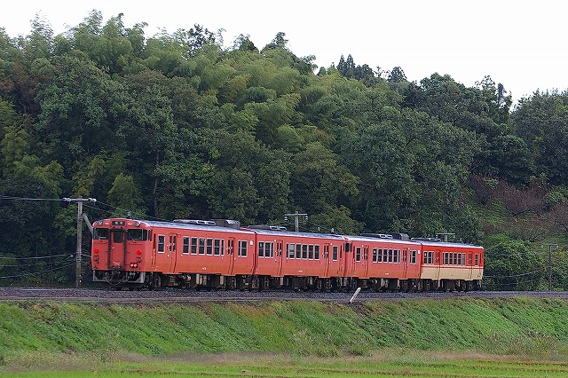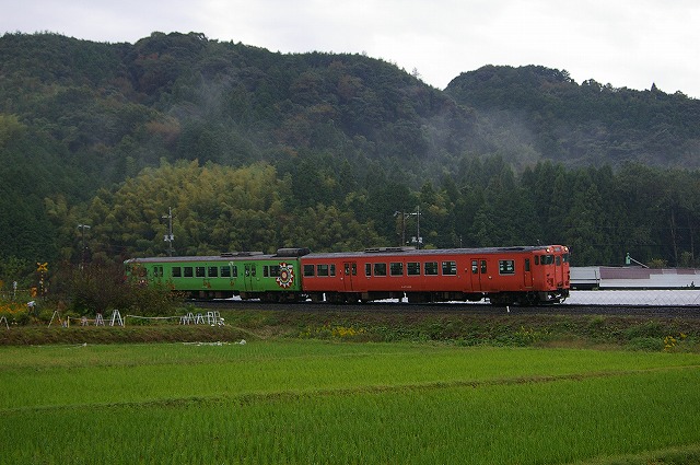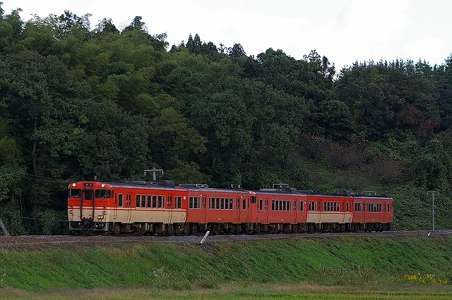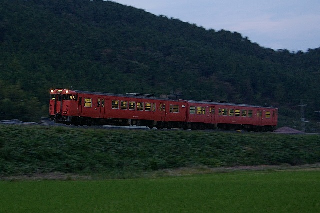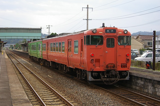 | 伯耆大山付近で381系・115系と64貨物を撮影して、伯耆大山駅に戻り、下り特急やくも号やEF64貨物の発車を見送ってから、鈍行で大センパイとの合流地点の松崎駅へ向った。待ち合わせまで時間があるのでキハ47を撮影して待った。大センパイが15時半過ぎにレンタカーで到着、合流して明後日のロケハンをして鳥取の宿へ向かった。 |