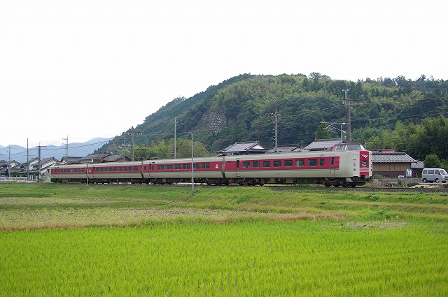 お召前日は生憎の雨の朝だった。ロケハンの結果、泊〜松崎に決定した。あとは明日を待つだけなので、お召回送追っかけシミュレーションと伯備線撮影を少々して、早めに宿入りし明日に備えた。が、夜は大センパイの知り合いの関西鉄さんたちと親交を深めた。 |
