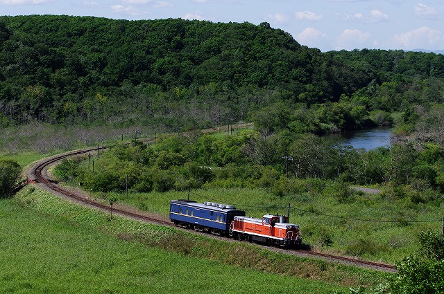 朝、ホテル前でMと合流し2日目スタート。昨日充分にマヤ検を撮りきっているので、撮影地はお任せで回る。まずは細岡の俯瞰ポイントへ。8時半に着いたがすでに満員御礼状態だった。ベスポジの少し下でカメラをセットして、心地よい風に吹かれながら通過を待った。スズメバチの攻撃にも遭わずに11時過ぎにマヤ検が通過、追っかけを開始するも、通行量が多く追い付かない。摩周駅の停車で先行できたので硫黄山バックへ向かう。撮影者0でラッキーと思っていたら、光線がイマイチで草も凄かった。何とか撮れるポジションでで構えたら、思いのほか良く撮れた。斜里岳サイドはたまたま先行できておまけの一発だったがキマッた。この区間のシメの浜小清水は、直前に雲が流れてきてマダラになってしまった。
