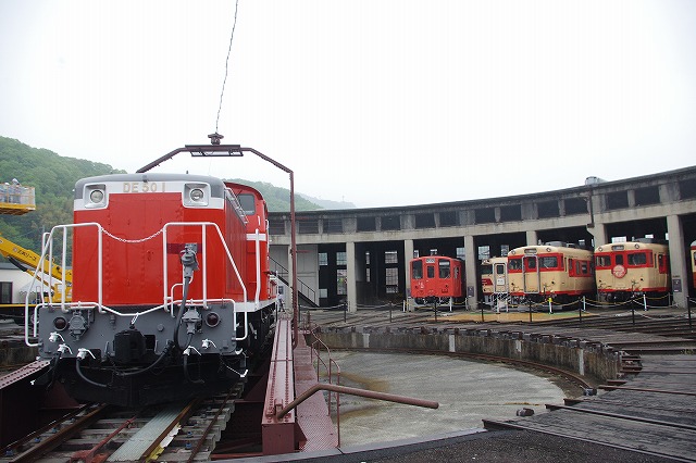 1。庫の中と期待せずに行ったら、転車台に引き出され展示されていた。小雨は降っていたが、気にせずシャッターを切った。雨予報なので高梁市のバンガローに宿泊した。 |