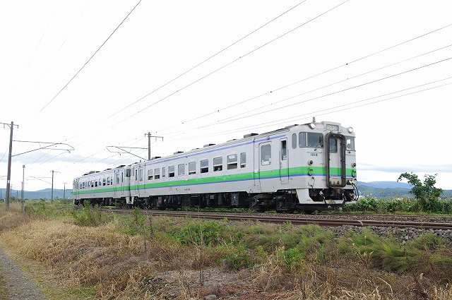 この先スジが立っているので、網走市街を避けて、女満別空港近くのルートをチョイスするも時間が稼げず、美幌の先の自動車道入口付近の陸橋でギリギリ撮影しさらに先へ進む。今度は、山の中をR333でショートカットできて40分ほど稼げた。予定していた生野駅付近は草がボウボウだったので生田原まで行き、駅手前の踏切から撮った。