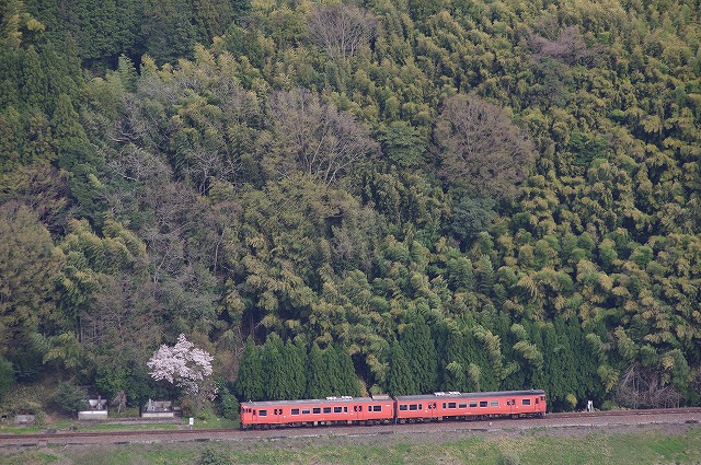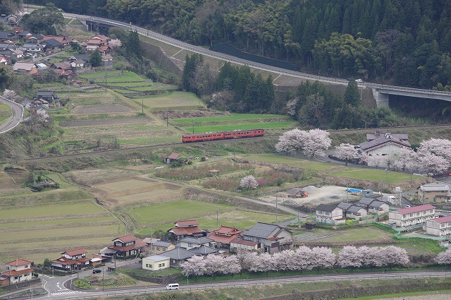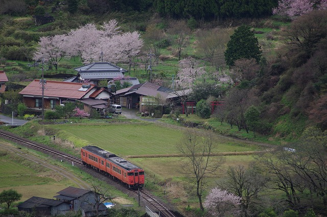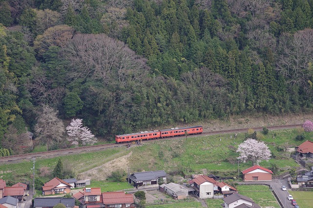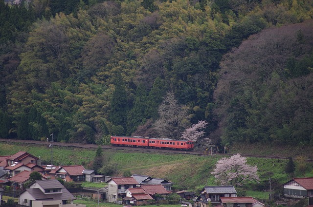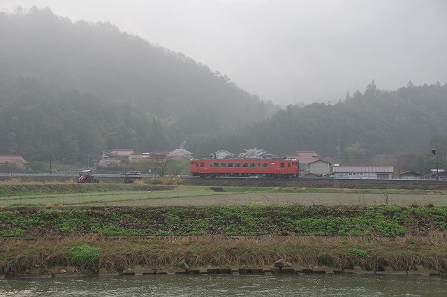 25日深夜に出発し高速を乗り継ぎ、途中仮眠して翌朝広島着。広島城・岩国城など回って、萩で宿泊。翌日は桜の萩城などを観光し、のんびり出発で山口線へ。往路は仁保の有名撮影地からスタート。なんと3名と空いていて快適に撮影。追っかけを敢行し、長門峡駅では桜と絡めた。