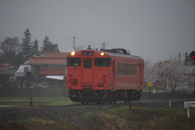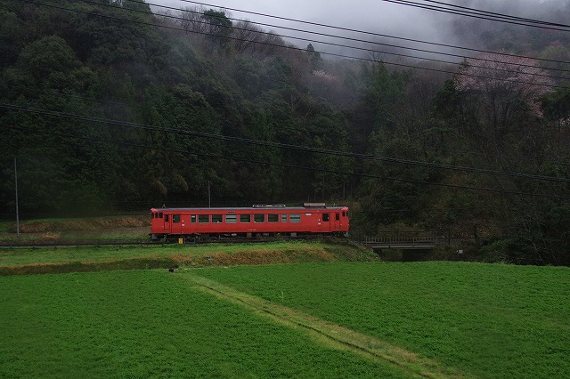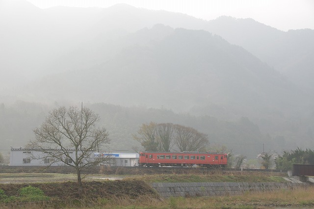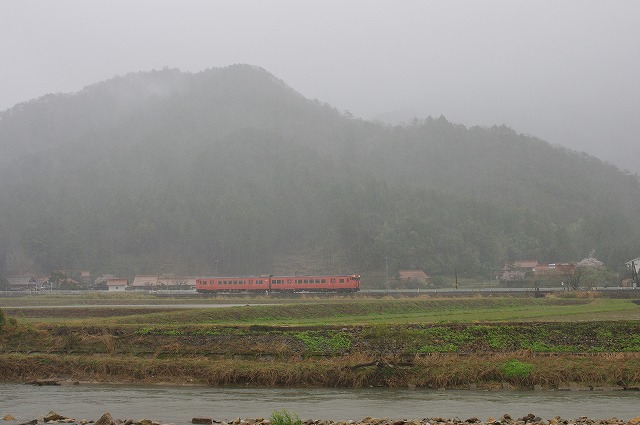 一夜明けでもまだ嵐の余韻が残り、なかなか行動開始できない。リミットの10時過ぎに仁保へ向かった。雨は止まず露出も上がらないので、駅進入を陸橋から狙う。昨日同様安全に追っかけを行い、長門峡鉄橋と徳佐の陸橋で追いつく。