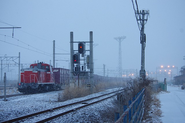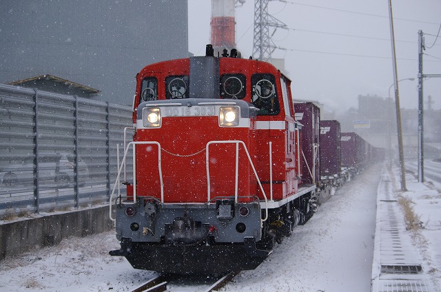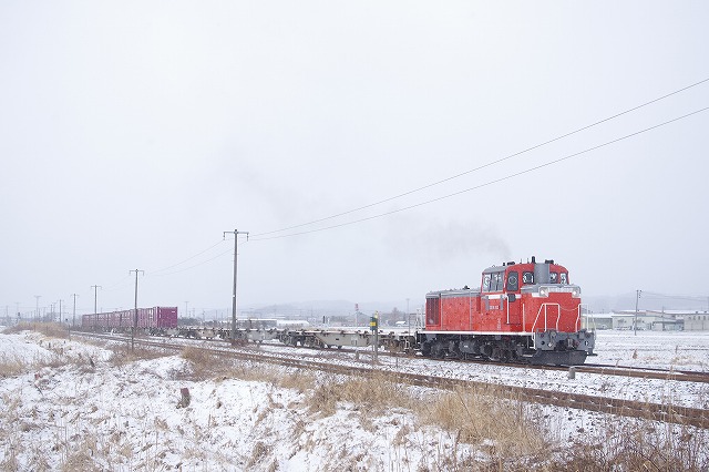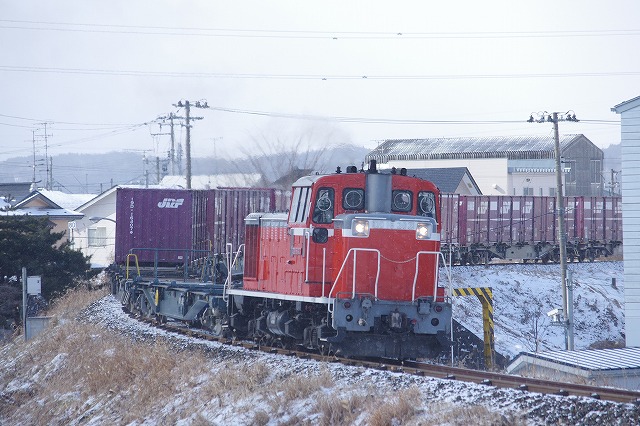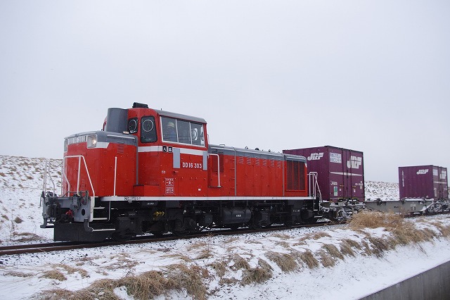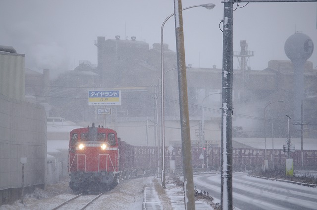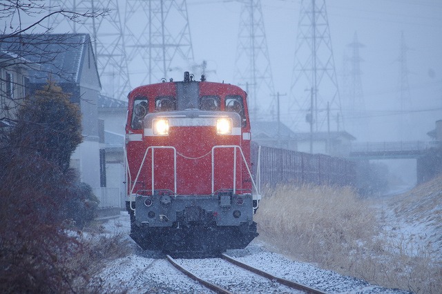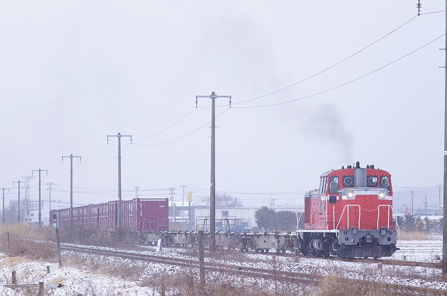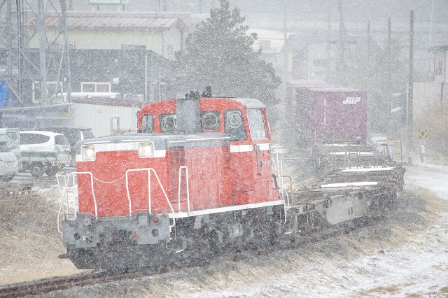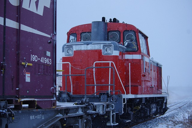 2019年2月 雪の中を行く八戸臨海のDD16貨物