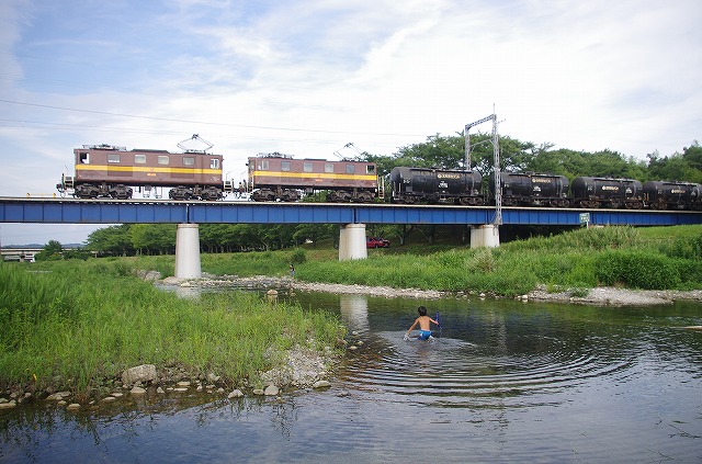 朝日付近に13時までいて、DD51はこれにて終了。三岐鉄道沿線でキャンプ地を探し、大安付近の川にキャンプを張った。川遊びしつつ三岐の貨物を撮った。 |