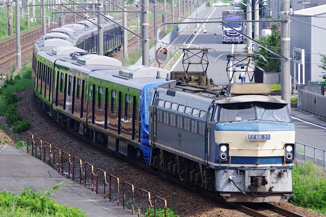 そのあと、気になっていた名古屋貨物ターミナル駅へ。タイミング良くDD13タイプのND55213がいたので撮ってから稲沢へ。朝の渋滞に巻き込まれながら稲沢駅着。ここの前後で2発、相鉄の新車の甲種を撮る。相鉄の新車は上質感を出すための濃い紺色だが、夜間の視認性はいかがなものだろうと思った(前照灯・車内灯が点いていれば問題ないか)。おまけに、DE10に牽かれるキヤ97も見ることができた。桑名を通り朝日付近へ移動した。 |