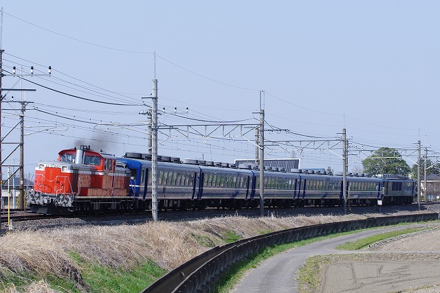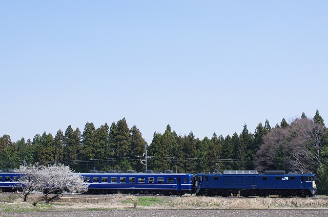 スタートは岡部から。太陽が顔を見せる直前に通過。岡部の停車で追い越し、深谷の桜満開の公園で撮って東北本線へショートカット。ロクヨンを先頭に市街地を行くところを記録。有料道路経由で日光線へ。鹿沼辺りは桜がピークで渋滞がありヒヤリとしたが今市の手前に余裕で到着し、サイドから。往路ラストの今市は、予想通り各ポイント数十人の人出で一番奥のところで肩越しに撮らせてもらった。 |