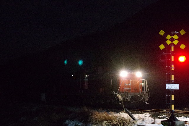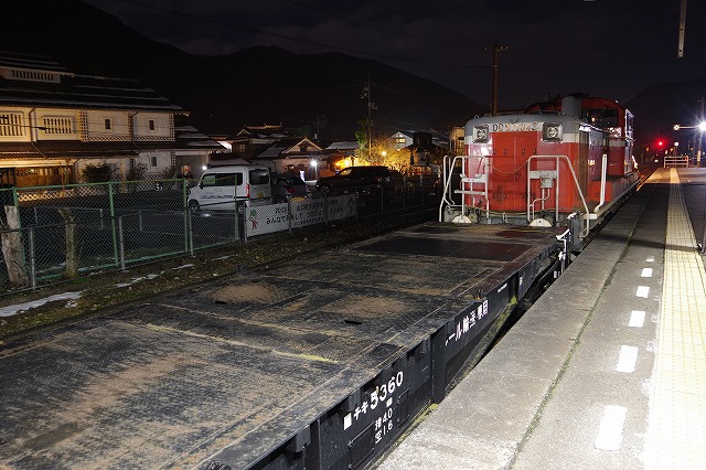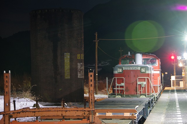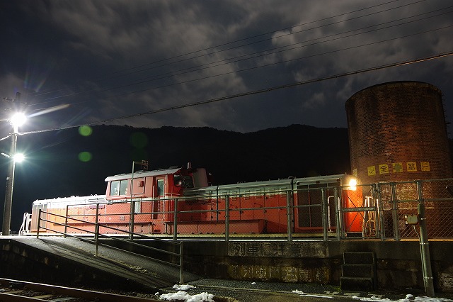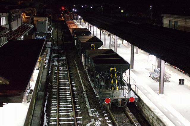 通過と思った徳佐駅では一旦停車してから発車して行った。ラストは篠目駅、早く着いたので踏切で到着を撮り駅へ。キハ40の下り鈍行と交換していた。給水塔と絡めてバルブし、静かに発車する姿を見送ってDD51ホキチキ終了。このまま車中泊したいところだが、明日のDD51米原訓練に向かうため、山口市内で給油と遅い夜メシ(九州で喰うチャンスの無かった福岡名物 資さんうどんを初めて食べた、噂通りごぼう天が美味かった)をとり、中国道で東上した。
