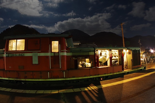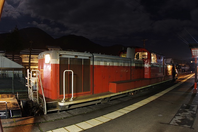 津和野駅のSL広場に行くと、直ぐに踏切が閉まり入換が開始。DD51が留置位置へ行くまでの入換作業を30分ほど撮り、移動して新山口行キハ47改造の臨時列車「○○のはなし」を撮影した。DD51発車まで4時間以上あるので、近くの津和野温泉で湯に浸かり夜まで待機だ。