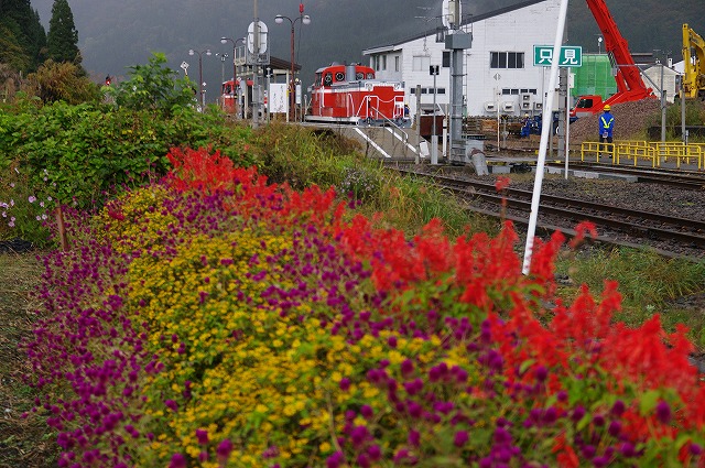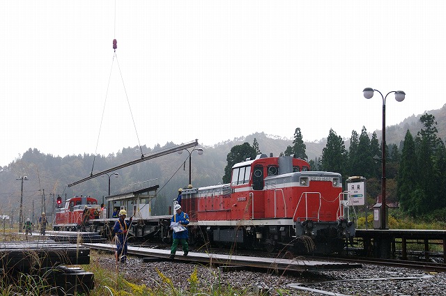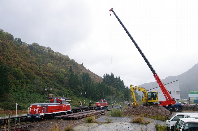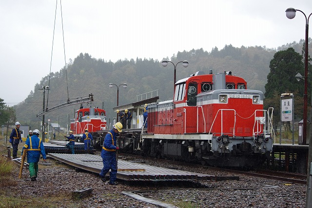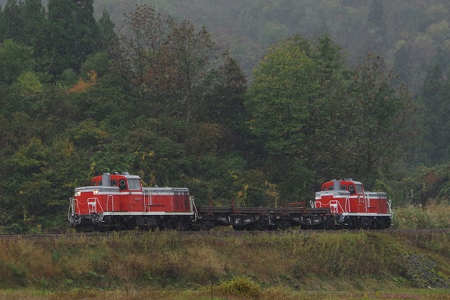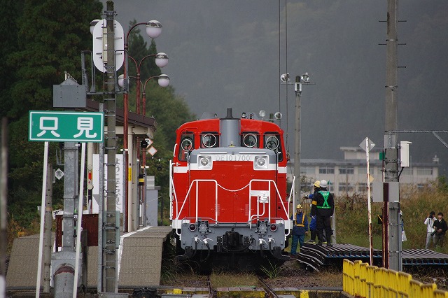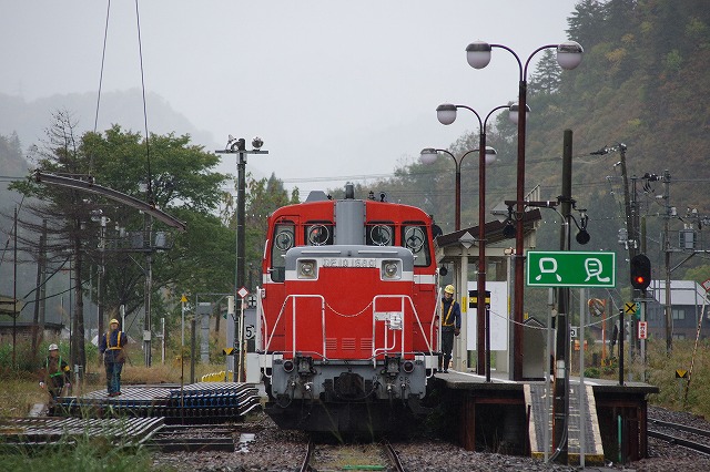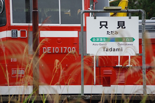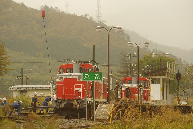 只見駅手前で追っかけ渋滞が発生し、到着したのは工臨到着15分後だった。小出方から順に回って会津方の踏切で一旦撮り終える。復路まで時間があり、発車時は暗くなるため、Mは郡山付近でチキ回送と12系回送を撮りに向かうとの事でここで別れた。ここからは電車(気動車)鉄だ。同じように大半の車鉄が郡山方面へ行ってしまったため、静かになった駅で撮影を続ける。早く構内に入って撮影したかったが、工臨があるため今日は5分前の入場と掲示が出ていた。きっちり5分前に入場し、キハ110と絡めたりして、あっという間に発車時刻。15:38小出発、小雨に煙る紅葉のローカル線旅を楽しみながら小出へ。小出から鈍行を2本乗継ぎ東三条へ。