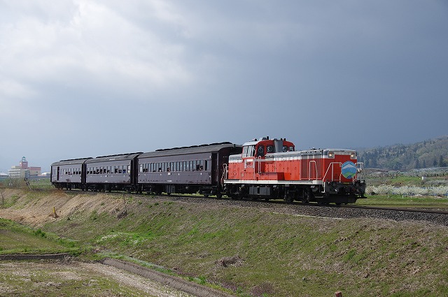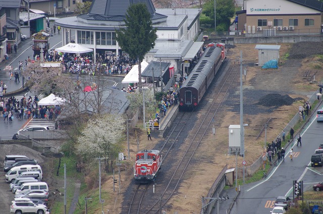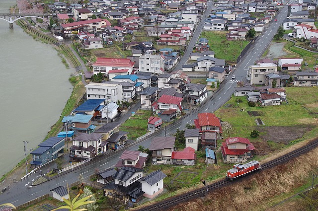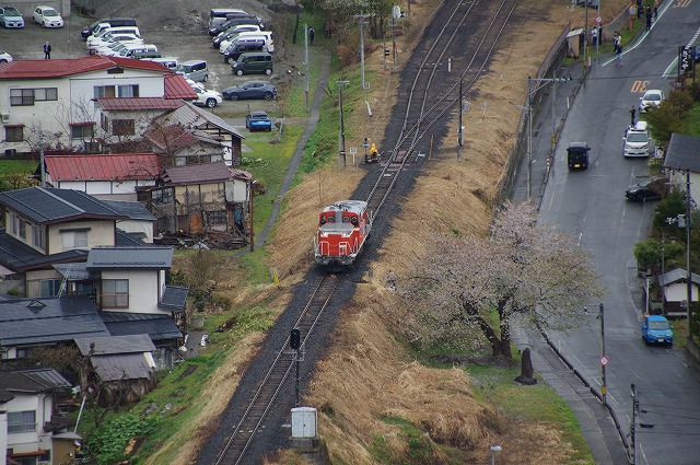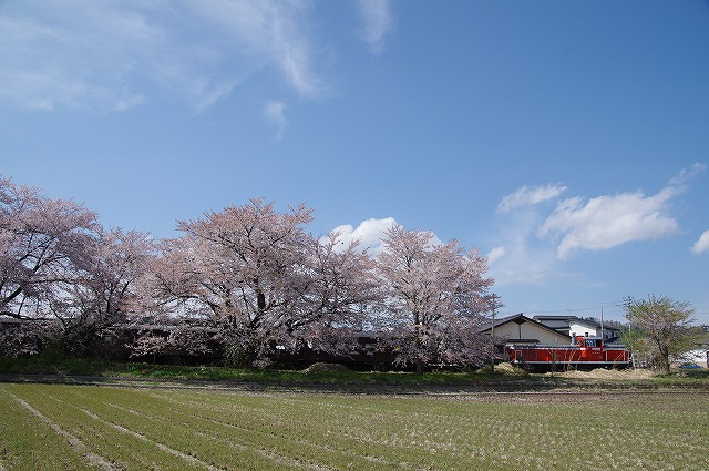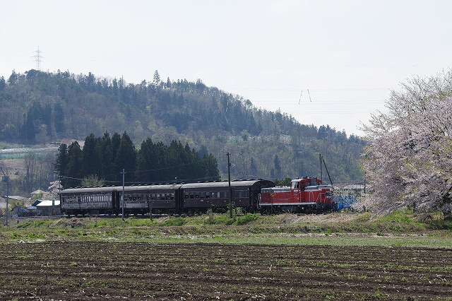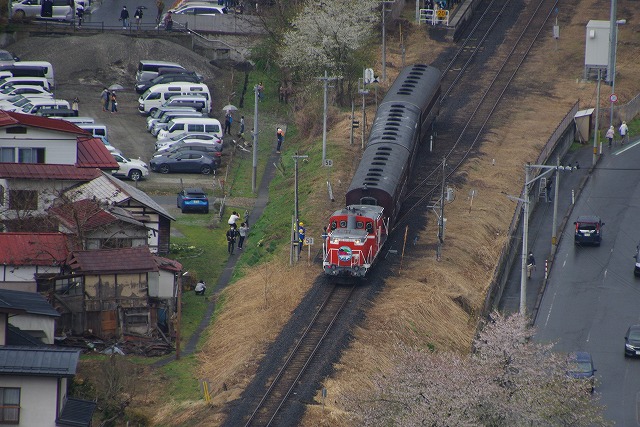 春の嵐の中、夜通し走って早朝に山形入り。現地も風が強いが、ロケハンしたら、まだ桜は残っていた。残っていた桜は、その後も続いた強風で花吹雪になり散ってしまい、羽前長崎辺りは数時間で見事な?葉桜になってガッカリ。その先の羽前高松駅はまだ残っていて一勝一敗だった。