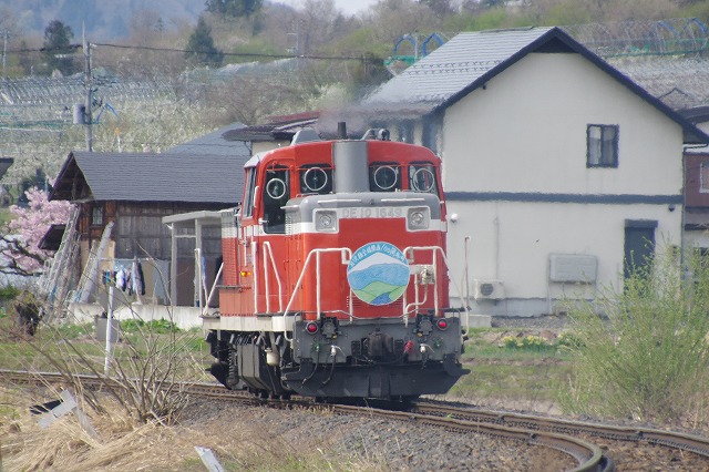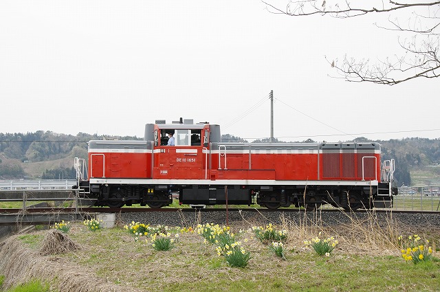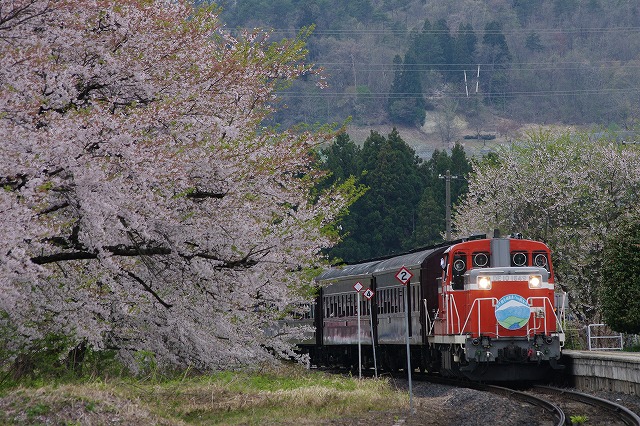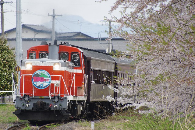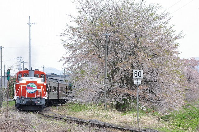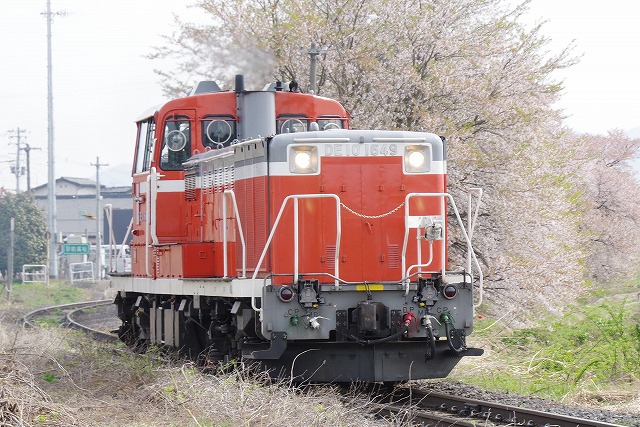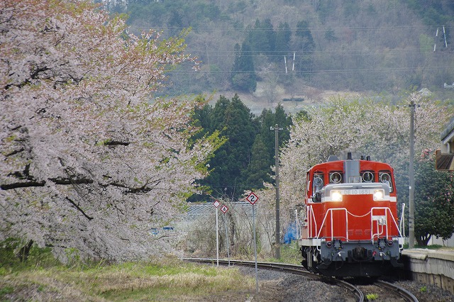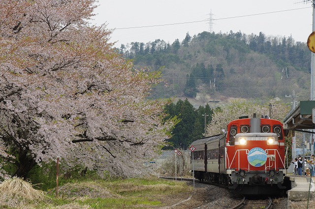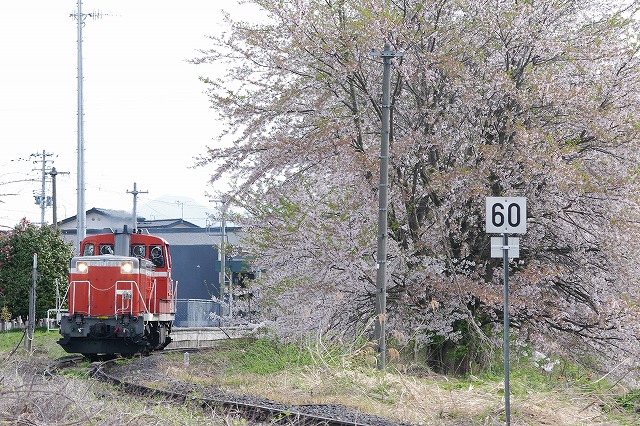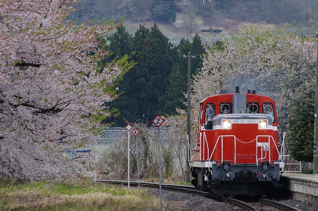 | 朝から晴れたが、昨日の強風で桜は散り、羽前高松駅だけ辛うじて残っていたので、こちらで重点的に撮る。 |