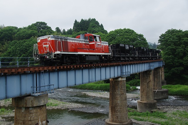 | 今年中の置き換えが囁かれる西金工臨。水戸線迂回のホキ交検配給は2020年に記録済だが、西金以北の未記録区間のホキ郡山出場配給を撮影するため、家を4時過ぎに出発して下道で向かった。宇都宮付近の渋滞は迂回ルートでパスして、常陸大子の河原には通過30分前に到着。撮影者が1名しかおらず心配になるが、時刻通り通過した。 |