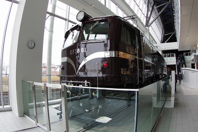 | 大人の休日倶楽部「鉄道博物館貸切りイベント」に当選したので、先月30日から公開が始まったばかりのロクイチ目当てで、半休をとって鉄博へ。2008年6月の大崎へのラスト自力回送以来、14年ぶりにEF58 61に再会。ロクイチは、入ってすぐの窓際にピッカピカに磨きあげられて鎮座していた。私のようなバリバリの鉄は少なく、ロクイチ前の撮影者は少な目だった。滞在15分弱で切り上げて駅へ戻る。本命の西金工臨DE牽引ラストラン撮影へ。 |