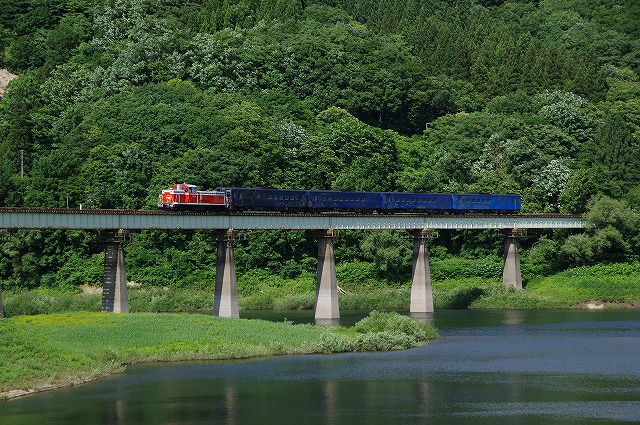 錦秋湖を眺めながら、秋田駅で買っておいた秋田肉三昧弁当で昼メシ。陽射しが強いので木陰で食べながらのんびり待つ。通過時には、撮影者がかなりの数に膨れ上がったが、階段状になっていたのでイイ感じで分散した。相野々の先で工事しているのを確認してたので、その手前でもう一発。その後、渋滞にハマるが、横手の長時間停車で追いつき慌てず先へ。 |