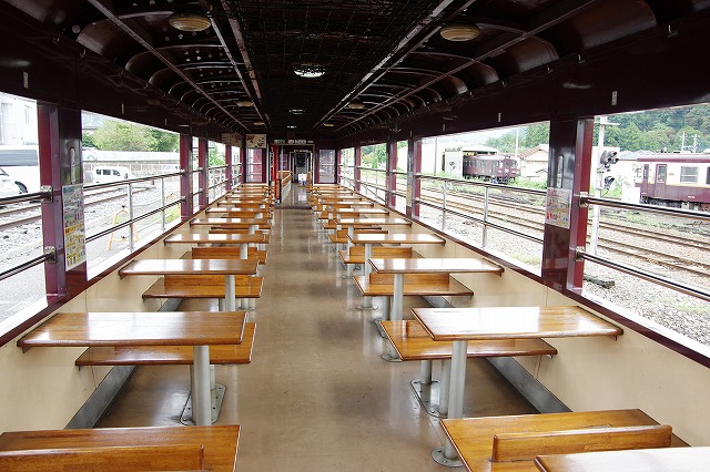 神戸駅 後ろのホームに停まっているDRCでも食事ができる |