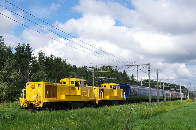 白金温泉の宿で6時に起きた。のんびり出発だが、近くの青い池を見物するために一旦宿を出る。朝日に照らされる青い池を見ながらサンドウィッチで朝メシにした。宿に戻り温泉に浸かって横になって休む。10時前に宿を出発し納内付近からロケハンするが、線路脇の草というか小さな木がどこもびっちりで、なかなか良い所がなく江部乙手前まで行く。4両ほど抜けるうえに実った稲穂が入れられる所を見つけ、貸し切り状態で撮影。滝川はアタリをつけていた陸橋でサクッと撮ってさらに進む。 |