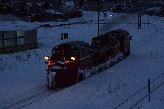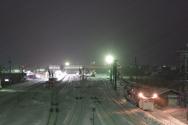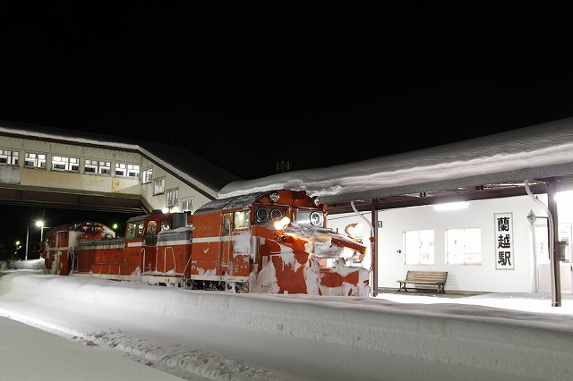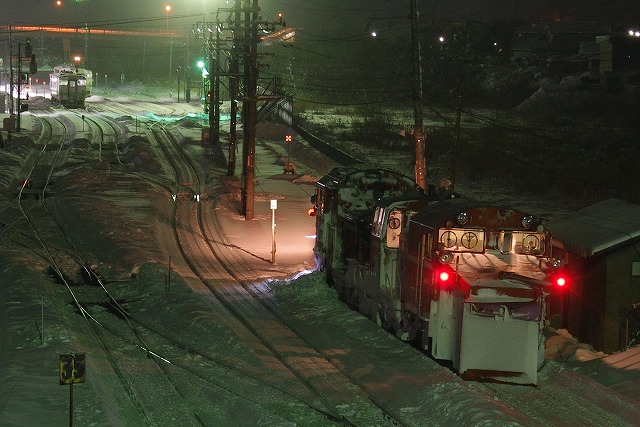 小樽築港でラッセル回送撮影後、さらに南下して蘭越へ。蘭越駅手前と駅で倶知安行ラッセルを撮って黒松内の宿へ。0時スタート、2時間仮眠だけで稚内往復ラッセル770km追っかけの一日が終了。風呂入って即爆眠した。 |