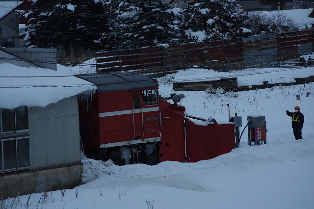 倶知安駅 雪112レのDE15 1509が入換える