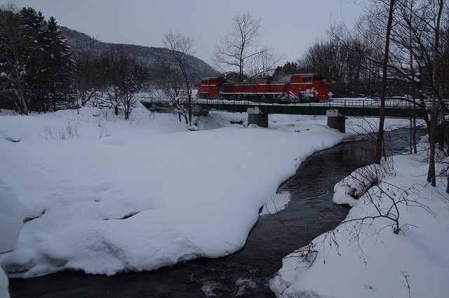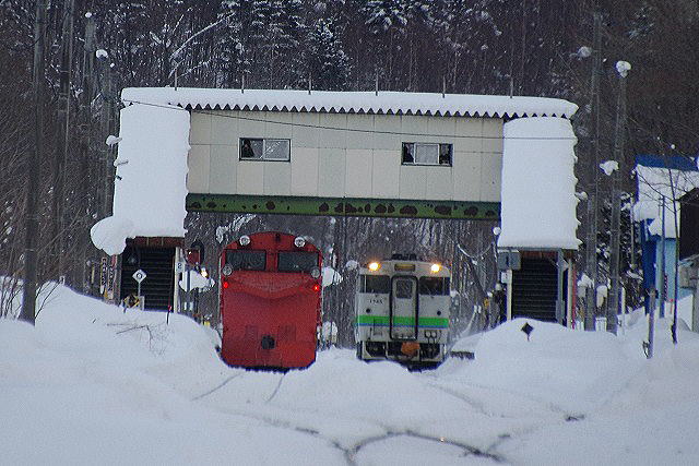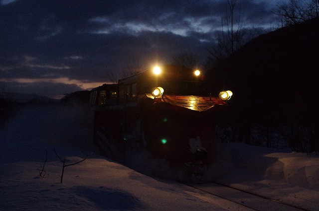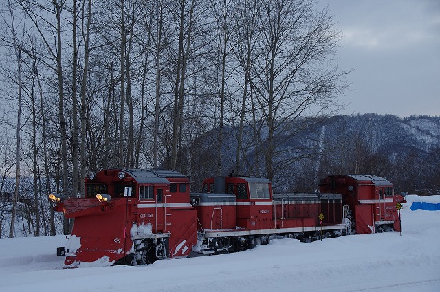 一昨日吹雪いた中愛別駅は無事キハ40の交換シーンを撮影。上川町外れの奥の方で、黄昏の中を行くやや掻きを撮って今年は終了。旭川ラーメンを食って旭川空港でレンタカーを返してJALの最終便で帰った。