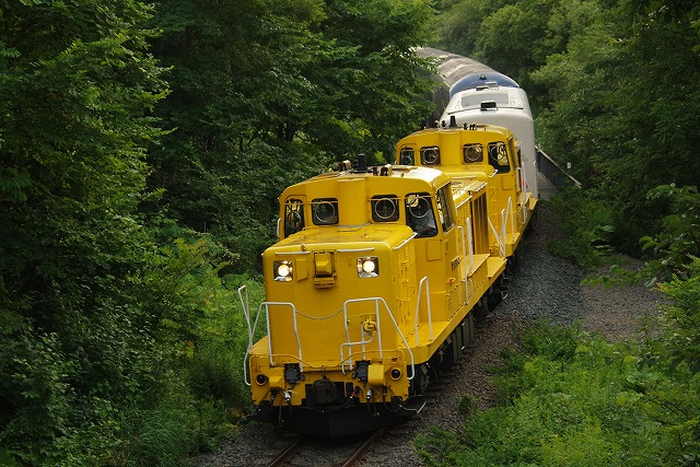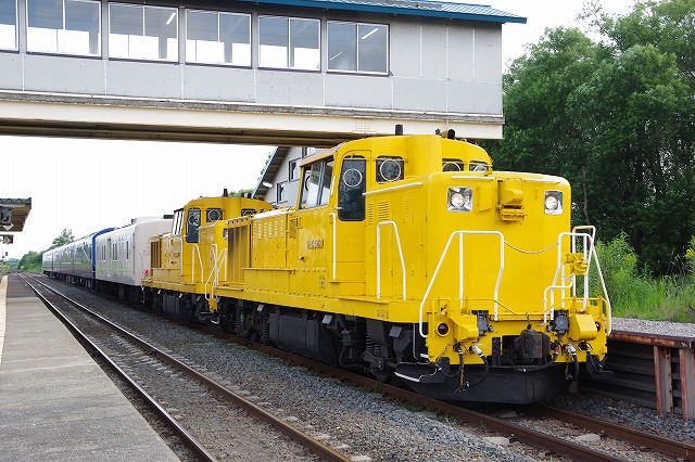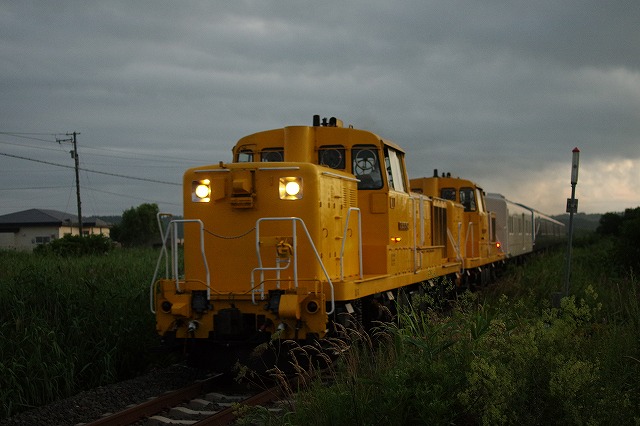 帯広までの客扱い区間は石勝線が多く撮影ポイントも限られるので、帯広以東の回送区間をメインにして、かつ今回は事前にダイヤが入手できなかったので、時刻の確認もしながら釧路まで追っかける。なので、午前中は士幌線の線路跡巡りをして、スタート地点の新得にはお昼前に到着した。セイコマの弁当を食べ、特急やDF200貨物を撮りながら通過を待つ。フル編成入らない場所なので、他に撮影者は来なかった。大体見込んでいた時刻に通過、高速に乗って先回りする。 |