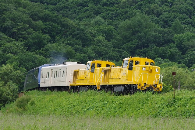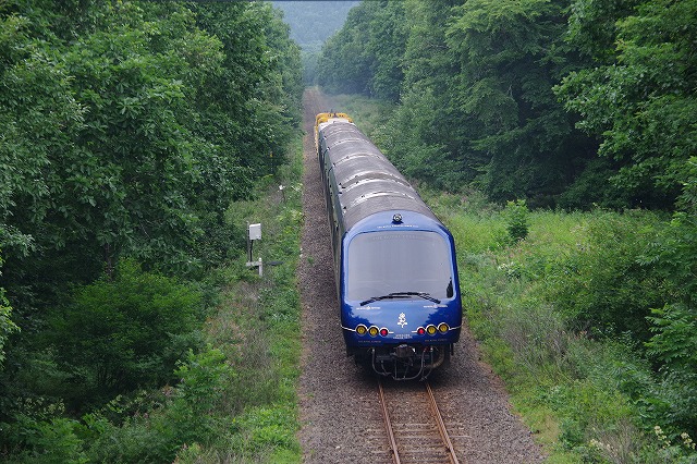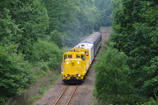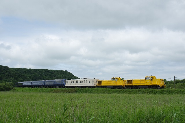 | 今日は曇っているが蒸し暑い。今年に入り、北海道をはじめ各地で熊の目撃情報が激増しているので、塘路のサルルン展望台など俯瞰はもってのほかだが、自分自身のジジイ化も激しく、今回は細岡の丘にさえも登らず下から撮影する。丘の方には10数名行っているようだが、下は5名集まった。下でもアブが多く(しかもデカい)、車にバチバチ当たってくるので、直前まで車内で待機。釧網本線のロイヤルのスジは川湯温泉まではあまり変わっていないようだが、昨日と同じく様子を見ながら追っかける。4年前はサルルン展望台俯瞰したので、追っかけはしなかったが、普通に走っていても余裕で抜くことができて、摩周までに2回撮影できた。摩周で降車があるが発車が不明なので、先を急ぎ陸橋で待ち構える。読み通り、川湯温泉まではほぼ変更なしのようだった。 |