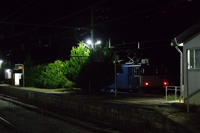 | 日曜限定のEF64 1000三重連を初撮影。何駅か停まるので坂北駅からスタート。ここは、ホームがあるので進入を撮って西条駅へ。西条駅は線路を挟んで中線に停車し、撮りやすかった。峠を越えて田沢駅には先に着いた。遅れていたようで10分延で80レが到着。待避と交換後、10分以上遅れて発車した。 |