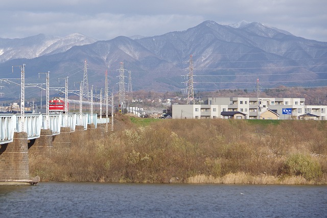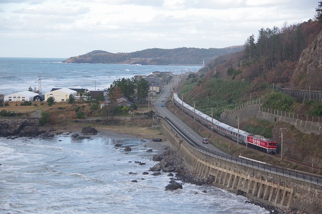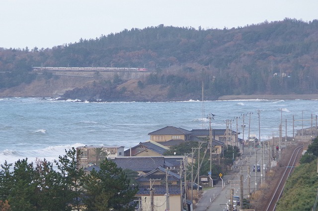 往路撮影終了後、久々に会ったMと近況を報告しあい、吹浦俯瞰がイイとの情報を貰い、そこで再会しようと別れた。復路の回送一発目は秋田らしく雄物川鉄橋からスタート。コンビニ弁当を食べて待っていると徐々に撮影者が増えた。通過時には雲も一緒にやってきてイマイチな仕上がりに。吹浦俯瞰は海が見える丘一面に撮影者が集結していた。シメは鳥海山を期待し、遊佐駅先で待つが、山は出ず陽は落ちるで薄暗い中通過。 |