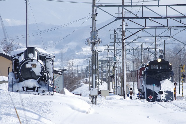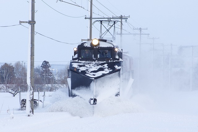 弘南のキ104をしっかり撮影でき、良い調子のまま五所川原へ。時間調整で撮影の五能線キハ40は強風で運休で残念だったが、ストーブ列車を撮ってから集合場所のホテルに入った。ひとっ風呂浴びて、夕方から団体行動に入った。今日は、「ラッセル組成構内撮影会」とその後の飲み放題付懇親会。撮影会も宴会も満足でへべれけになって、2晩連続車中泊だったので、泥のように眠った。 |