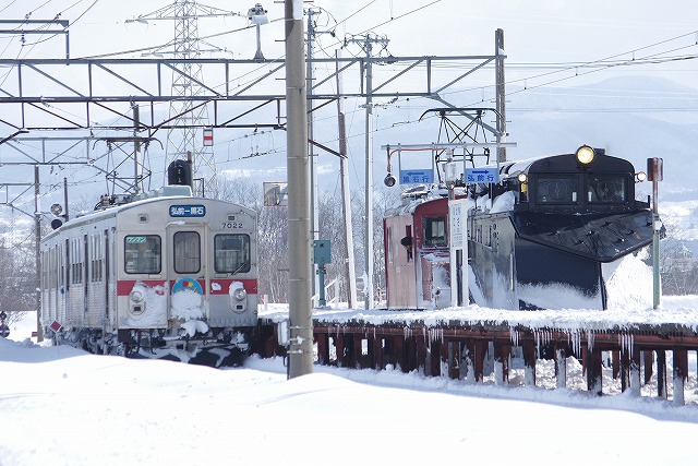 | 下り線除雪後、再び退行し上り線に戻る |