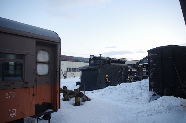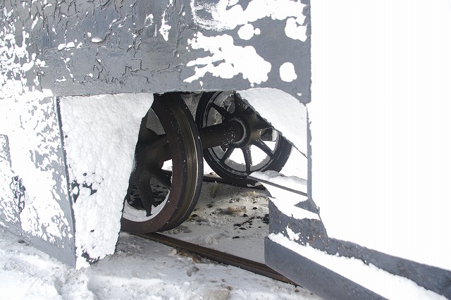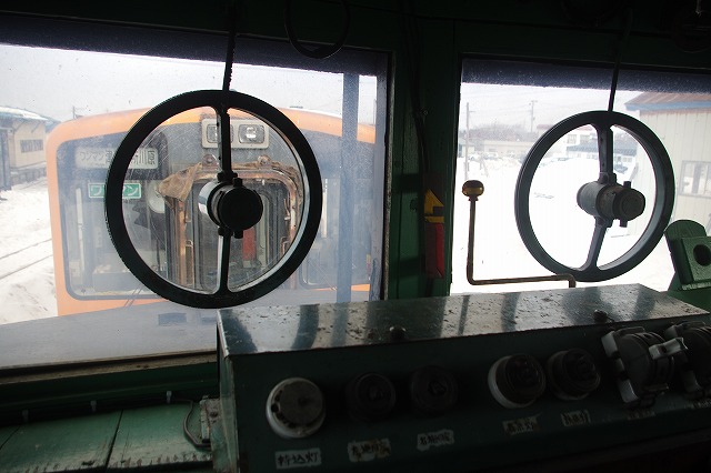 あっという間に撮影ツアー終了。想像以上に激しく雪を掻き大満足だ。このあと、五所川原駅に戻り構内でキ101の運転台見学だ。 |
