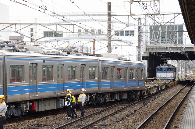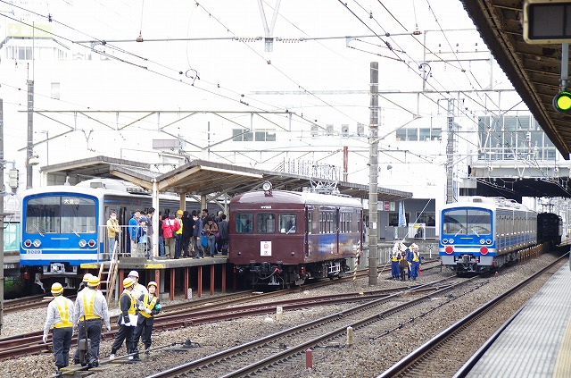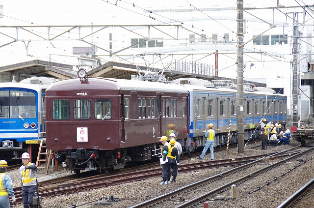 | 連結後コキから5000系を切り放し、コデ165が大雄山線内へ引き上げる |