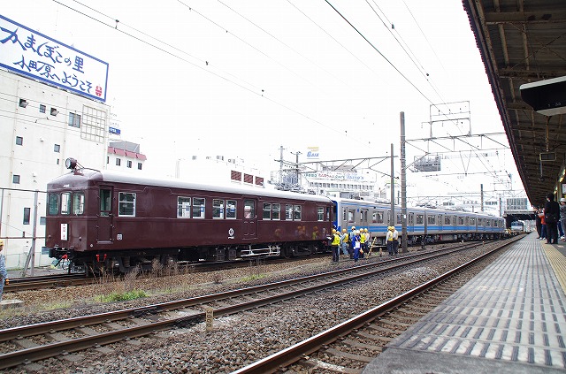 | 11:05 5000系停止後、コデ165が連結に向かう |