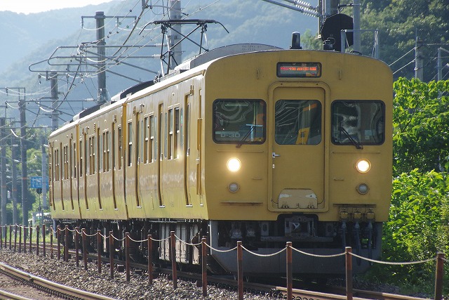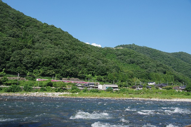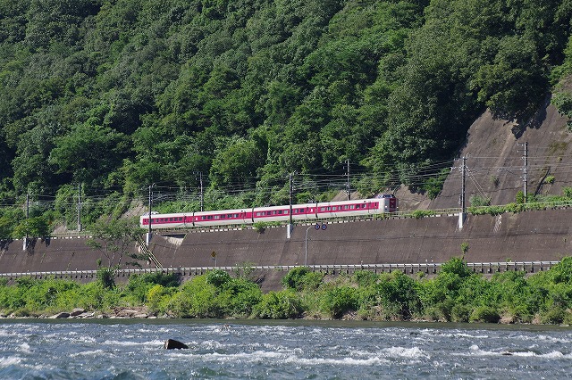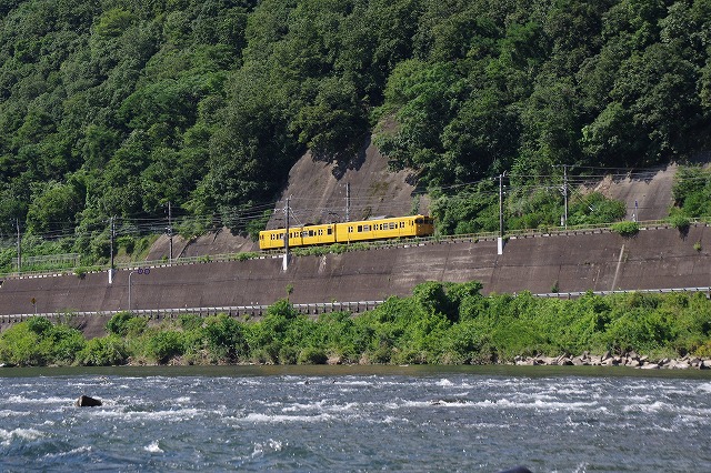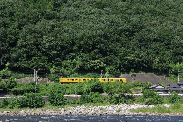 | 午前中の小野田123系撮影後、高速で総社へ。今度は伯備線。子供達に川遊びさせながらの撮影を考えていたが、高梁川の流れが早く、良いポイントが無かったため、豪渓のカーブへ。冷房の効いた車内で涼みながら夕方まで撮影した。 |