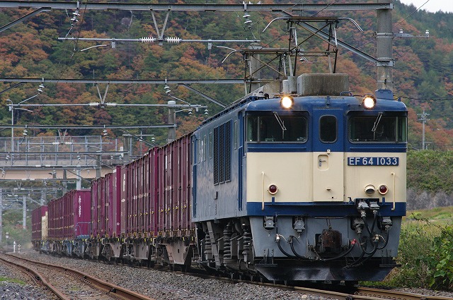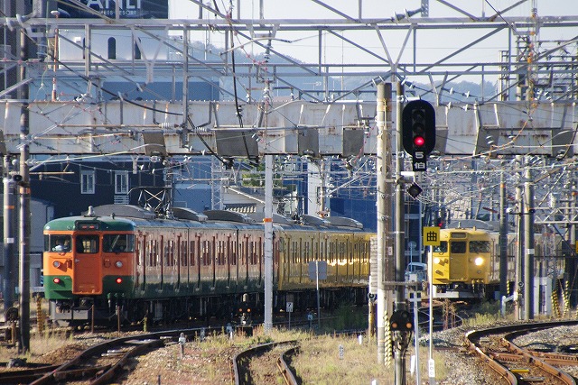 下石見信号所着、奥にある山の紅葉がきれいだ。車内でコンビニ弁当の昼メシ(何かずっと冷たい飯な気が・・・)、夜の宴会でアチアチのもんをたっぷり食べるぞ!貨物の前に臨時回送が下って行った。前は回送幕後ろはやくものままだった。どうやらこれが新見で打ち切った故障車現車のようだ。ダイヤ整理が上手くいったようで、遅れることなく貨物も通過。倉敷までの追っかけ開始。