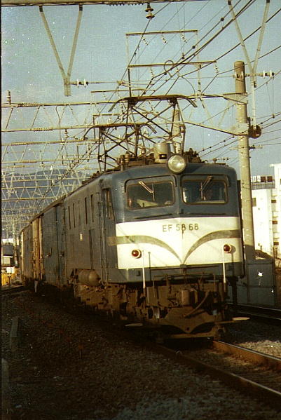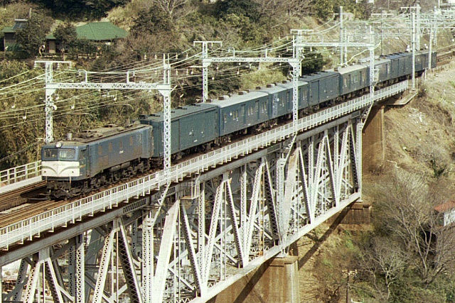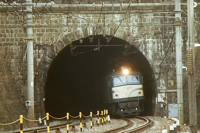 | 市制記念日で学校が休みなので、間もなく荷物列車から撤退するゴハチを撮影に根府川へ行った。午前中、11時過ぎまで、ほとんどゴハチが来ないので東京方でブルトレ撮影して、熱海方へ移動した。11:49に黄色い新幹線が名古屋方面へ下って行くのが見えた。 |