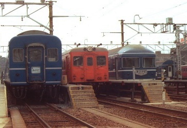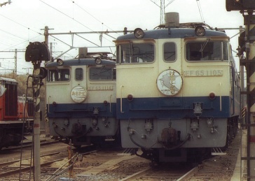 22日 九州の佐伯より夜行急行日南の自由席で夜を明かし(二晩連続だ)門司港へ。門司港からキハ66-6に乗って門司、そこからはクハ411-338に乗って下関にやって来た。とりあえず240円の天そばを朝めしに食べる。ホームでゴハチの荷レやEF30を撮る。電話で下関運転所の見学許可をとる。昼メシは中華屋珍満の餃子セットにする、卵焼きが付いていて久しぶりなんで美味かった。ご飯をおかわりして830円。13時から一時間、下関運転所を見学した、ゴハチやEF62・クモヤ90016・クモヤ90104・客車を撮る。 |