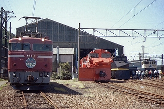 | 5:05やっと日が昇ってきた、海が見えた。6:11名古屋着、楽しみにしていた、きしめんスタンドは7時からなので諦めて、便所に行って顔を洗った。6:42名古屋発、尾張一宮を出てから名鉄のパノラマカーと併走した、良い眺めだった。8:03米原着、歩いて機関区へ。20分で着く、長ーい列の一番後ろにつく。8:40入場開始、機関区の職員が「マナーを守って」とか「ロクイチが来てるよー」とかハンドマイクで叫んでいた。9時過ぎにやっと俺達も入れる。 |