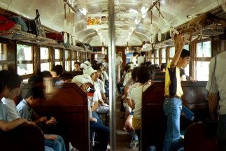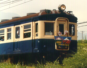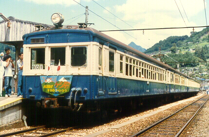 6日 臨時の急行アルプス(客車)で夜を明かし辰野に5:24に着く。今回は同じ学校のF君とI君と一緒だ。昨日は新宿の小田急百貨店でやっていた「鉄道展」を見に行きそのままこの旅に突入している。駒ヶ根で買った伊那路弁当600円で朝メシにする、値段の割に美味しいオカズ満載だった。伊那本郷〜七久保間でさようならゲタ電号を撮影する。12:40撤収、線路内を歩いて駅へ向かう。線路内を歩いていると、突然後から汽笛が!!慌てて線路から離れると、下りの貨物列車が走っていった。あやうくED62にひかれて死ぬとこだった。下りが行った後なんで、今度は上りだろうと油断していたのがいけなかった。以後気を付けよう。辰野を通り上諏訪へ向かう、途中暑さのために線路が伸びたとかで、点検待ちで運転を見合わせていた。スワコYHに16:05着夕メシは外のレストランでエビフライ定食900円を食べた、すっごく美味かった。YHのミーティングに出て22:00に寝た。
