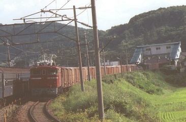 杉田付近 16:45 上り貨物列車 ED75 708 |
