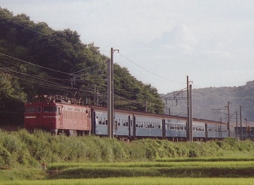 松島付近 8:30頃 下り鈍行 ED75 1005+旧客 |