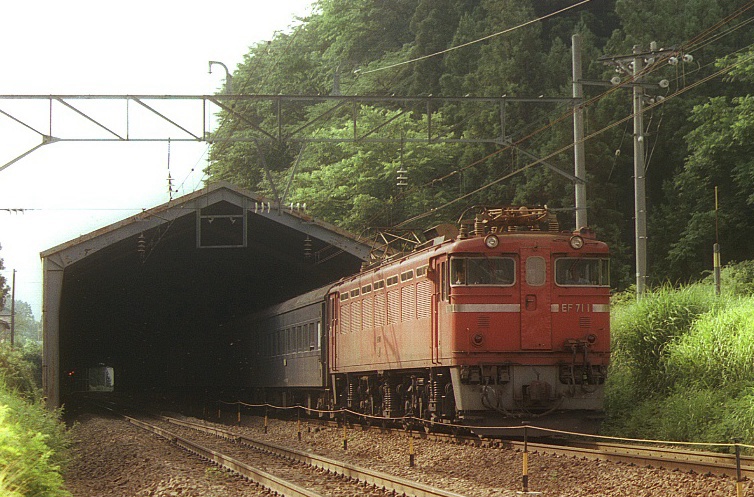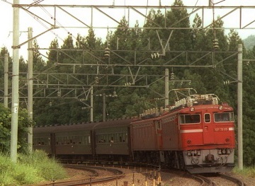 大沢駅付近 8:08 上り鈍行 EF71 15+EF71+旧客 |