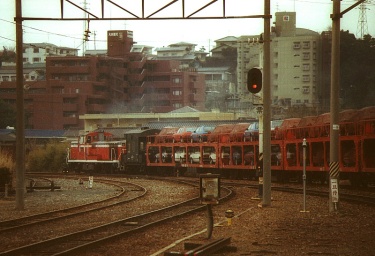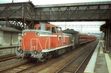 (2005-10.1追加 情報提供:通行人さん) 香椎 DE10 1550の自動車運搬貨物列車 |