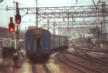 | 筑前宮田構内は広いヤード跡が草で覆われていた。筑豊本線で勝野から原田へ。飯塚まではキハ23-24、そこからはオハフ50-113と珍しい車両が続いた。原田16:29着、側線に休車の気動車が10両以上止まっていた。ローカル線めぐりであっという間に夕方だ、まだ2路線残っている。鹿児島本線で鳥栖へ、そこからは九州でも少なくなった旧型客車鈍行で羽犬塚へ、スハフ42-203に乗った。キハ20-440で矢部線を一往復、基山に戻り甘木線へ。甘木駅はビックリするくらい大きく立派な駅だった。もうひと頑張りで、鹿児島本線で朝通った折尾駅へ。22:59急行かいもんで折尾発(オハ12-129)、二晩連続で車中泊だ、しかも同じ車両! | ||