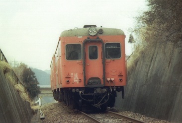 11時過ぎに高千穂バスターミナル着、ここで女子大生二人と別れる。彼女達は高千穂峡観光に行くそうだ。俺は歩いて駅へ。20分くらいかかった。駅はバスターミナルに比べてかなりヘンピな場所にあった。窓口で、24日に乗るこだま号の指定券3000円を買い高千穂駅の増収に協力した。それから土産屋で時間をつぶした。12:51高千穂発(キハ20-444)、2分遅れだ。ビスケットとシーチキン缶とジュースでブランチにした。満腹でうとうとしていたら、14:16延岡着。丁度、特急富士が来たので撮った。日豊本線で宮崎へ向かう。この特急の7号車もビデオカーだった。美々津を過ぎたあたりでリニアの実験線が見えたが試験走行はしていなかった。 | |