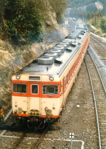 左:1984年3月22日17:57 恵良付近 229D キハ40-2038