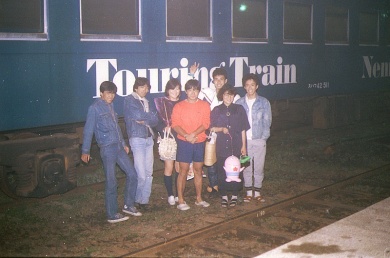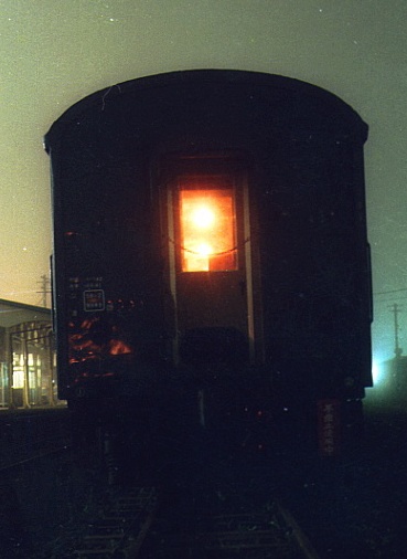 18:19(2284キロ)根室駅着、夕メシの準備をしかけていると、隣の兄さんが「一緒にやろー」ともちかけてきた。結局ライダー5名でのキャベツ鍋とあいなった、面子は俺の他、相模ナンバーのVT・練馬ナンバーのXJ・名古屋ナンバーのVT・宮城ナンバーのオフローダーだ。俺は、ご飯担当で4名分の米を炊いた。18:55発の鈍行の車掌さんがカンテラを持って様子を見に来て「いいなー」と言っていった。21時過ぎから食べだす、キャベツとコンビーフと塩コショウだけの単純な鍋なのにすごく美味しい、あっという間に鍋がカラになり第二陣を投入した。みんなでワイワイガヤガヤやって食べるんで楽しかった。一息いれ駅前の水道で食器を洗いツーリングトレインの前で記念撮影をした、街のお祭り帰りのお姉ちゃんも交えて撮った。なんやかんやで客車に戻ったのは23時を過ぎていた、疲れたんで日記もつけずに速攻寝た、就寝23:23。