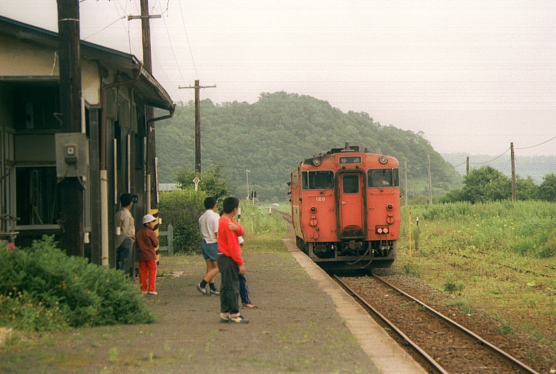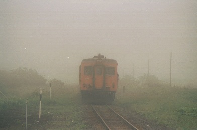 5:40起床、周りの人が ガサゴソやるんで目が覚めてしまった。ゆうべ一緒に鍋をつついた相模ナンバーのVTの兄さんと喋る。歯と顔を洗って、7:44ツーリングトレイン根室発、今日も霧がすごくシールドを拭き拭き走る。7:51〜8:13(2289キロ)花咲駅、前に来たときよりも更になんも無い感が強くなっている、待合室の地元のおばさんと喋る。鈍行を撮ってから落石方面へ向かう。少し先の温木根踏切で急行ノサップを撮る。
